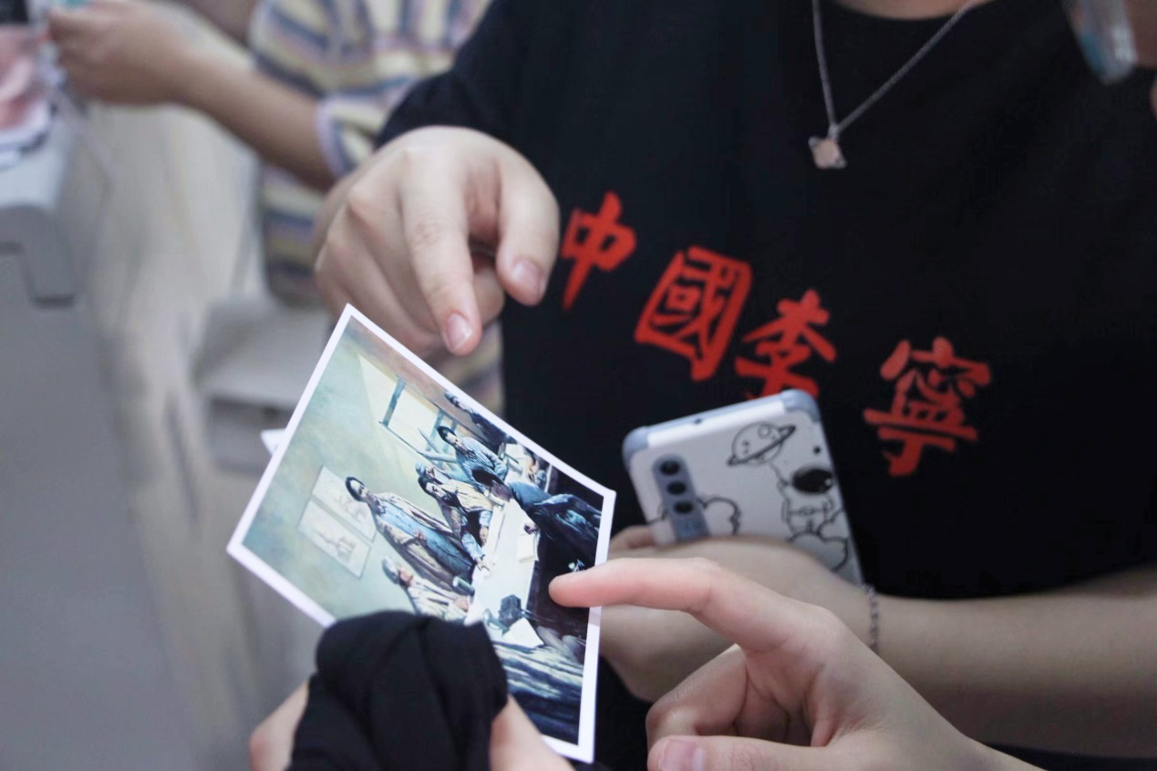 活动当天,学生们以5个人为一个团队,分别扮演“农民”“工人”“革命领导者”等角色,成为剧本演绎玩家,依次参加“寻踪党迹”“反‘围剿’行动”“八月来信”“传送党史”“科技剪影”“秘密行动”等关卡,完成当前任务获取通关手环后抵达终点取得胜利。