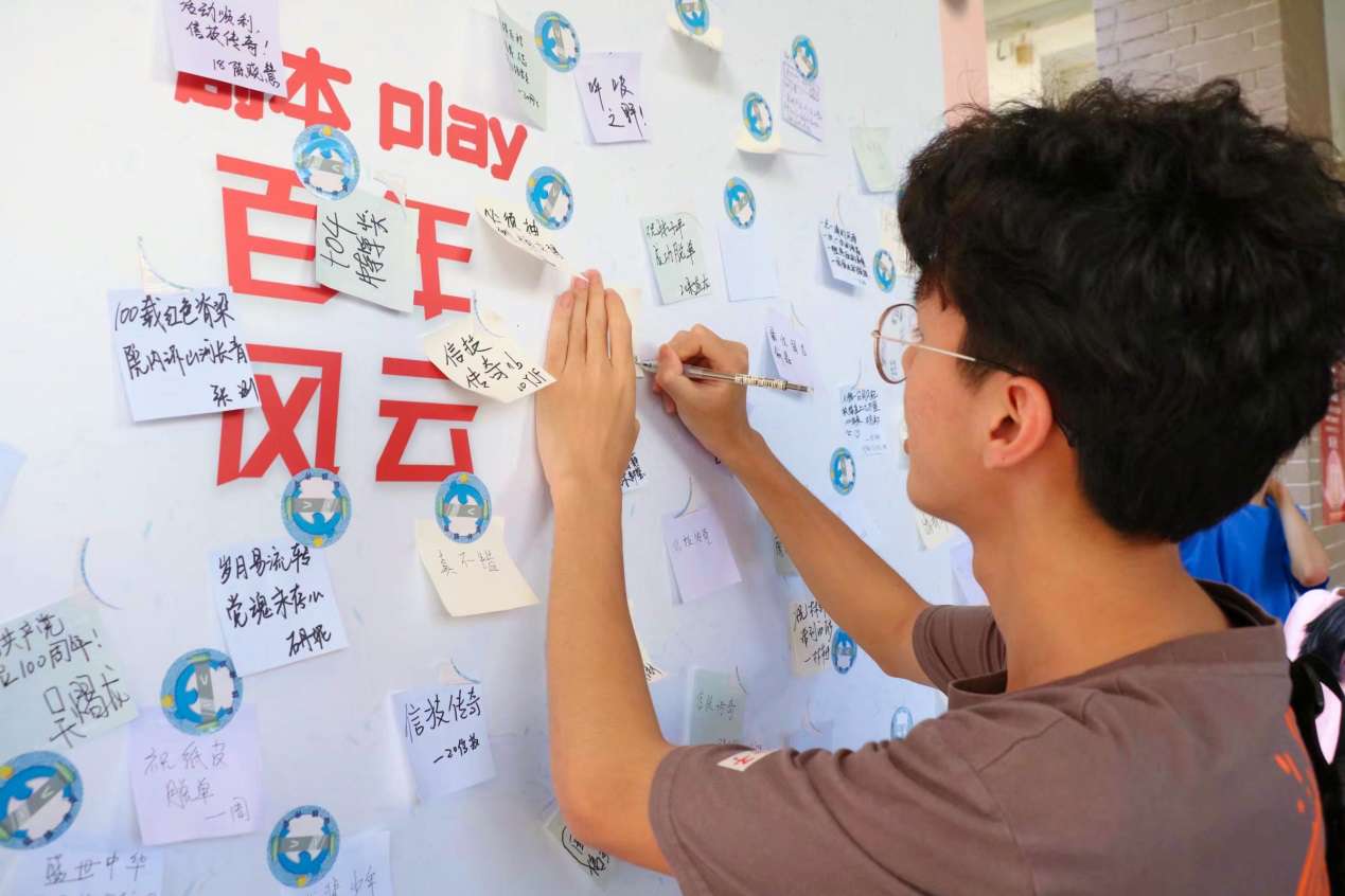 由福建师范大学协和学院习近平新时代中国特色社会主义思想读书社主办,信息技术系读书社承办的“剧本Play 百年风云”庆祝中国共产党成立一百周年党史学习体验课成为当天的“网红打卡地”,学生们自主学习、自主设计、自主组织,把党史知识融入精心设计的活动中,通过角色扮演、情景模拟、团队协作,让活动参与者在“沉浸式”活动中重温党的历史,共同追忆中国共产党波澜壮阔的光辉历程,汲取奋进力量。活动关卡以中国共产党的百年历史为主线,以“红船精神”“古田会议”“胜利会师”“科教兴国”等党史知识为元素,激发学生通过踏寻、模拟、扮演、知识竞答等多种形式学党史。