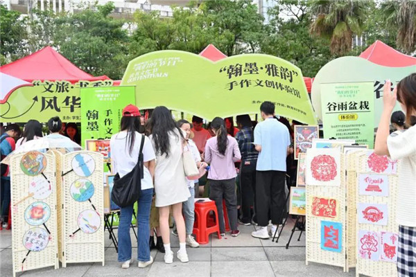 4月20日,闽南师范大学第十四届读书文化节“我们的节日”阅读市集在弦歌广场火热“开市”。学校在阅读市集中融入思政元素,将美育与优秀传统文化相结合,引导青年大学生深入学习贯彻党的二十大精神。
