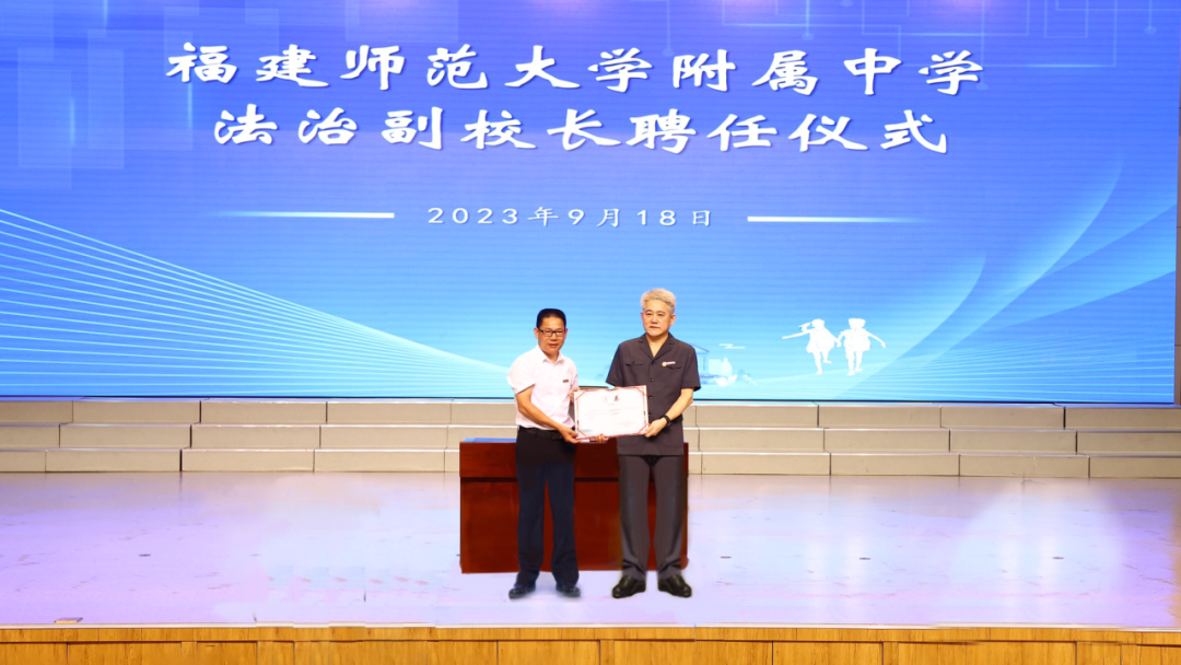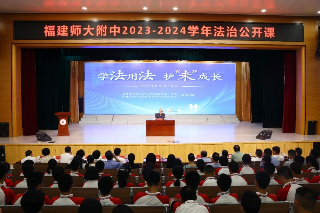9月18日,省法院院长金银墙受聘担任福建师范大学附属中学法治副校长,并以“学法用法 护‘未’成长”为题为800余名师生代表讲授法治公开课。
