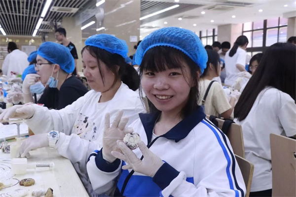 为大力弘扬中华优秀传统文化,在中秋佳节来临之际,福州三中滨海校区举办“巧手揽月  情满中秋”冰皮月饼DIY活动,师生通力合作,一块块香甜软糯的月饼逐渐成形,每一个月饼都凝聚着师生对中秋的美好祝愿。
