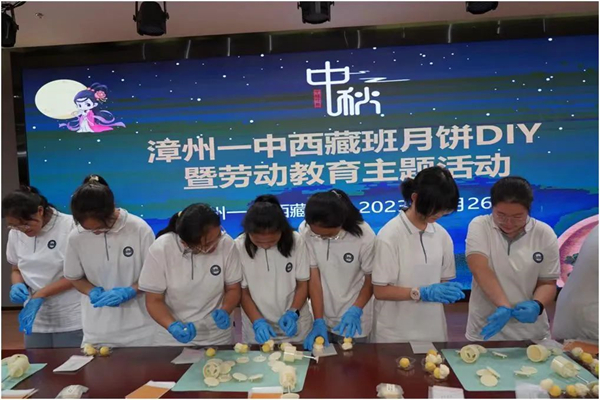 漳州一中举办了“闽藏一家迎国庆,民族欢聚话中秋”月饼DIY活动。活动邀请了近六十名的藏族学生与志愿者们共同感受手工做月饼话传统习俗的乐趣。