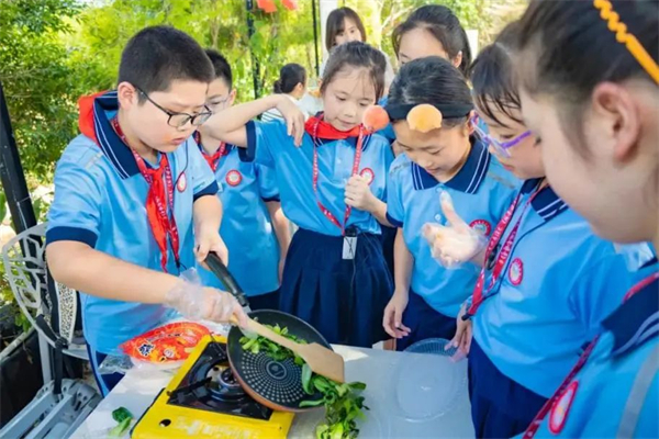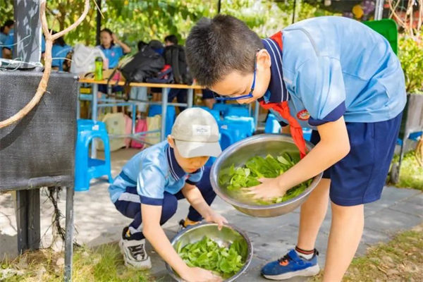 同学们分工合作,将采摘的蔬菜清洗,烹饪出美味的菜肴。