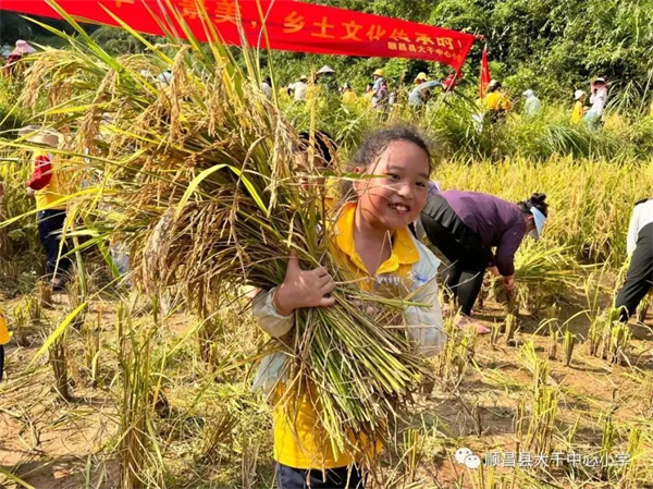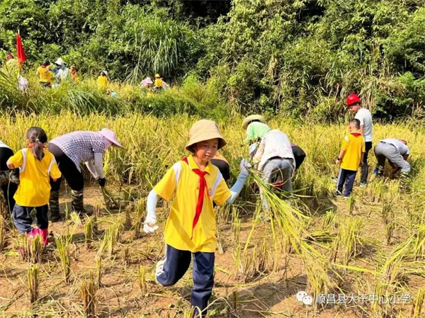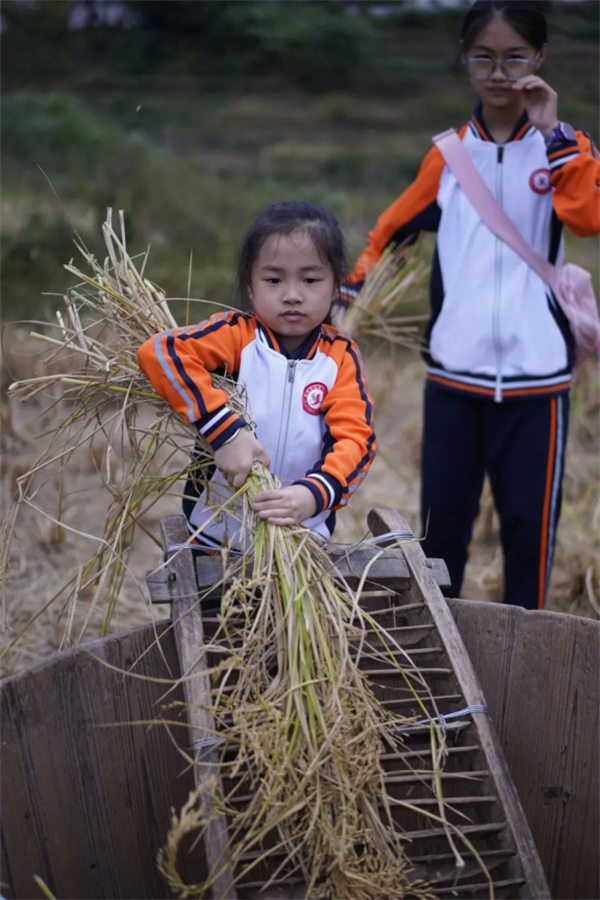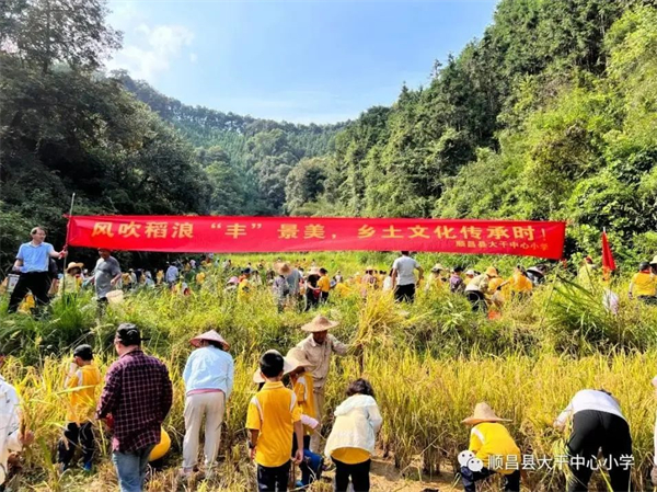 为助力劳动教育课程落地,顺昌县大干中心小学开展“庆丰收 促和美”暨“田野欢歌 乡土乐章”兴粮节粮亲子同劳动教育实践活动。在老师的指导下,学生们拿着镰刀,将稻穗割下。在另一处,几个学生把收割完成的稻谷札成一束,使劲拍打打谷桶,一时间,风中弥漫着浓郁的稻香。