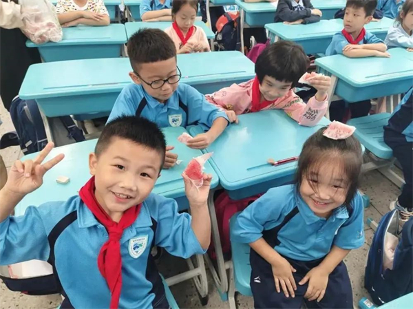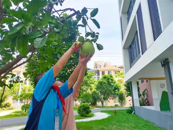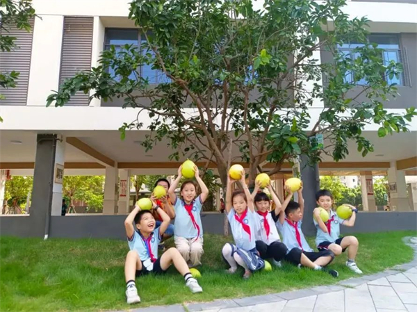 丰收的季节,福州市象峰学校的校园里,柚子挂满了枝头,孩子们 冲出教室,和秋风撞个满怀,和柚子来个拥抱。