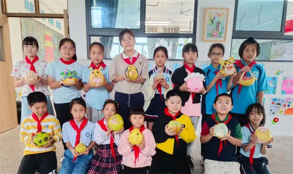 在品尝自己亲手采摘的柚子之外,孩子们还大展身手,制作出一件件柚子美术作品。