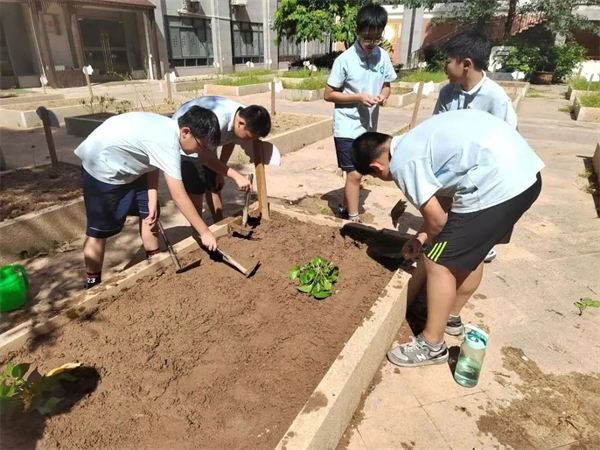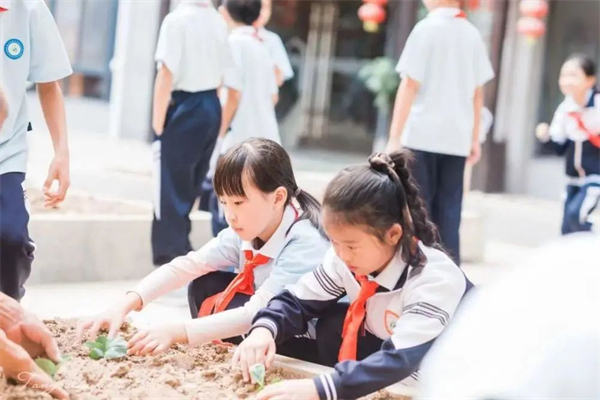 迎来丰收季后又开始了换种季。晋江市第六实验小学开展了“锄园小农场”秋耕劳动教育活动。同学们肩扛锄头、手拿铁锹开始劳作,把耕作情景 “搬”到了校园。