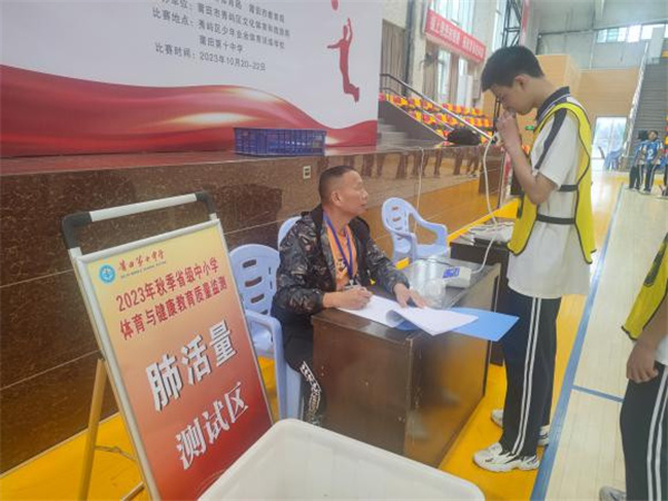 在测试的过程中,监测组专家们发现部分学生在测试肺活量时不懂如何吹气,引体向上动作不规范,跳绳不连贯等情况,都予以适时地引导,耐心地为学生示范动作、讲解动作要点,在提升学生自信心的同时,确保数据的准确性。