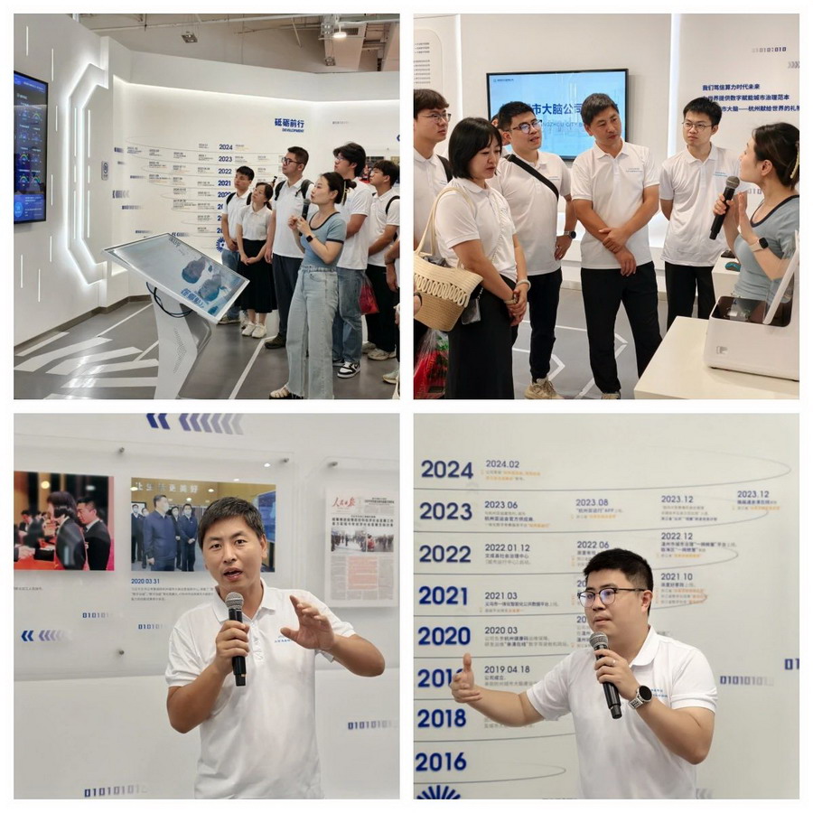 在杭州城市大脑有限公司,实践队围绕科技成果赋能基层治理现代化开展学习调研。在“数字城市技术展厅”,师生系统了解了杭州城市大脑公司发展脉络与前沿应用,通过深入考察“城市大脑”“一网统管”“未来社区”“智慧康养”等典型案例,以及覆盖公共服务、志愿服务、家政服务等多领域的惠民数字化场景,真切感受到大数据等前沿技术在提升城市治理精细化、智能化水平上的巨大价值与广阔前景。师生还就智慧治理发展前景及政企数据协同等议题与工作人员展开深入探讨。厦门大学思政课教师陈仁锋表示,智慧治理的根本在于“为人民服务”,必须坚持人民至上理念,运用先进技术不断满足人民对美好生活的向往。