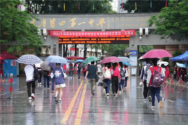 今年高考遇上强降雨,今明两天,福建省仍有强降水、强对流和低能见度天气。其中,8日,福建省大部阴有中雨,中南部地区部分有大雨到暴雨,局部大暴雨;9日,福建省大部阴有中雨到大雨,西北部地区和南部沿海地区的部分有暴雨,局部大暴雨。为降低雨天对高考出行和考场的不利影响,全省各地多部门合力护航,做好自然灾害突发事件应急处置预案,确保平安高考。