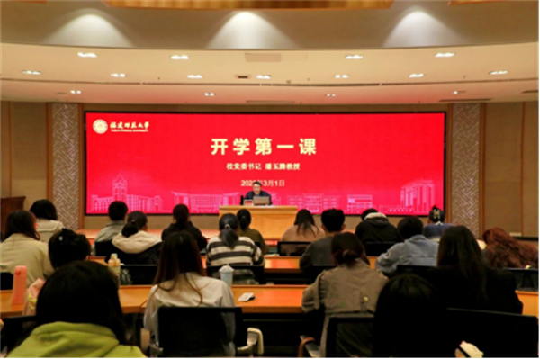 3月1日,福建师范大学党委书记潘玉腾教授以《中国式现代化进程中的青年担当》为题,面向青年师生讲授“开学第一课”。
