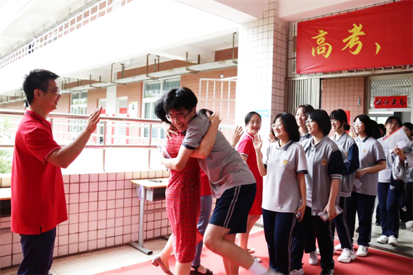 在电话里,陈老师宽慰了她一个多小时,最后她答应继续考试。在接下来的几场考试里,陈老师不断给学生鼓气,她也越考越顺,越来越自信。“孩子最后一科考完过来拥抱我的那一刻,我觉得一切都是值得的!”陈老师高兴地说道。