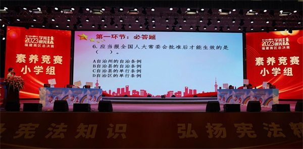 本次活动分为演讲比赛和素养竞赛两个部分,经过省级比赛初赛,最终有小学、初中、高中、高校四组64名选手进入决赛。比赛全面考察选手对党的二十大精神、习近平法治思想以及宪法法治知识的理解和掌握。演讲比赛环节,选手们围绕宪法学习感悟,结合成长经历,讲述自己学习宪法法治知识、从事法治实践亲身经历和真实感受,抒发自己爱党、爱国、爱社会主义的情感,表达了努力成长为社会主义法治的忠实崇尚者、自觉遵守者、坚定捍卫者,带头做宪法“代言人”的决心。素养竞赛分为初赛和决赛两个阶段,决赛分为必答题和抢答题两个环节,最终角逐出各个组别的各个奖项。