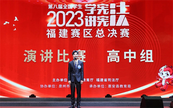 9月23日—24日,第八届全国学生“学宪法 讲宪法”活动福建赛区总决赛在惠安县举行。本届活动由省教育厅、省司法厅主办,泉州市教育局协办,惠安县教育局承办。省委教育工委委员、省教育厅党组成员、副厅长陈丽英出席活动并致辞,省法院、省检察院、省司法厅等单位相关负责人,泉州市委教育工委、市教育局主要负责人以及惠安县委县政府分管领导等参加了活动。