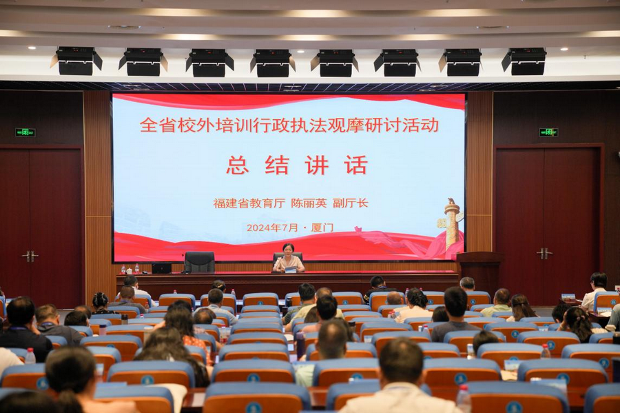 全省校外培训行政执法观摩研讨活动7月16日至19日在厦门举办,来自全省各市、县(区)教育局负责校外培训监管工作的116名干部参加。省教育厅副厅长陈丽英出席活动并讲话。