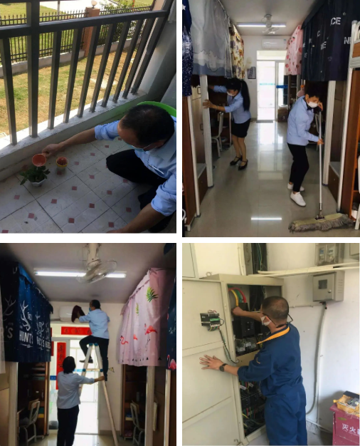 不仅是晒被子,宿管的叔叔阿姨们还为住宿学生提供了擦拭桌椅、通风消毒、绿植浇水等暖心服务。