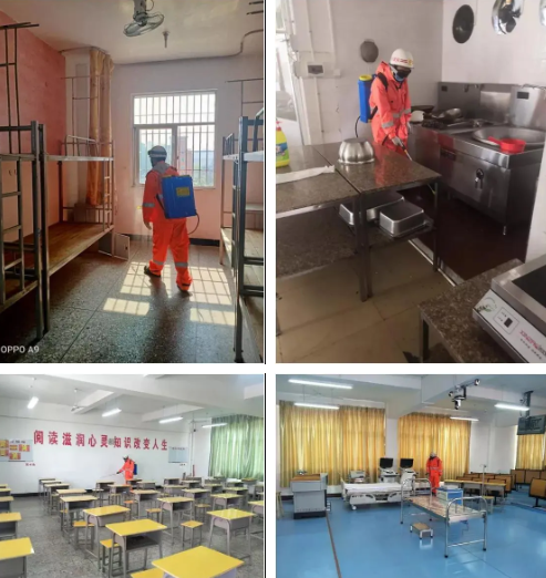 5月4日上午,漳平市消防大队官兵一行深入学校进行专业全面消毒杀菌作业。漳平市疾病预防控制中心工作人员也来到现场指导消杀工作。