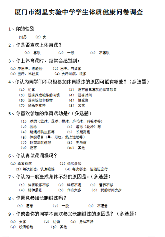体质管理方面。各校开足、开齐体育课程,全面落实大课间体育活动制度,每天保证进行阳光体育活动,保障学生每天校内1小时体育锻炼时间。厦门市教育局要求全市学校落实1-2年级每周4课时,小学3-6年级和初中每周3课时,高中每周2课时的体育与健康课程要求。支持有条件的学校每天开设一节体育课。开展“明眸健行”跑操、“轻眼课间十分钟”等活动,让每位学生掌握2项运动技能。