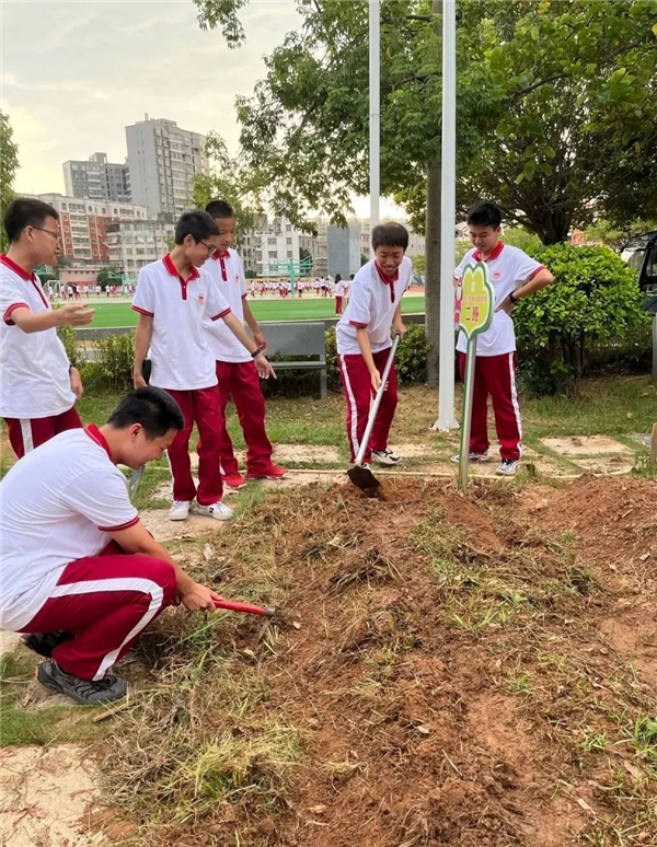 新学期,福州屏东中学开展了校园小园林小景观设计与试验实践活动。师生们在实践中愉快探讨实现校园小园林小景观的基本方案;从土壤、温度、空气等角度探究花卉生长的最基本条件;了解三角梅、菊花、茉莉花、广玉兰等福建省常见花卉的生长习性,最后,同学们商定以三角梅为主苗木,爬藤后再进行挂藤类的瓜果种植。