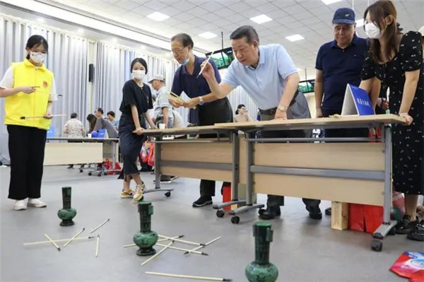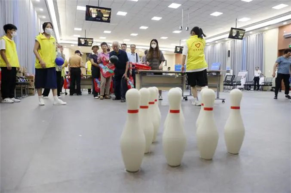 在随后举行的以“趣味为主,适当运动、相互交流、身心愉悦”为目的的趣味运动会,设有趣味保龄球、夹乒乓球、掷飞镖、投壶大挑战等运动项目,项目兼具运动性和趣味性,深受老同志们欢迎。每一位老同志都精神饱满、认真专注,参与热情高。喝彩声、掌声、加油声此起彼伏,幸福、愉悦的心情洋溢在他们的脸上。
