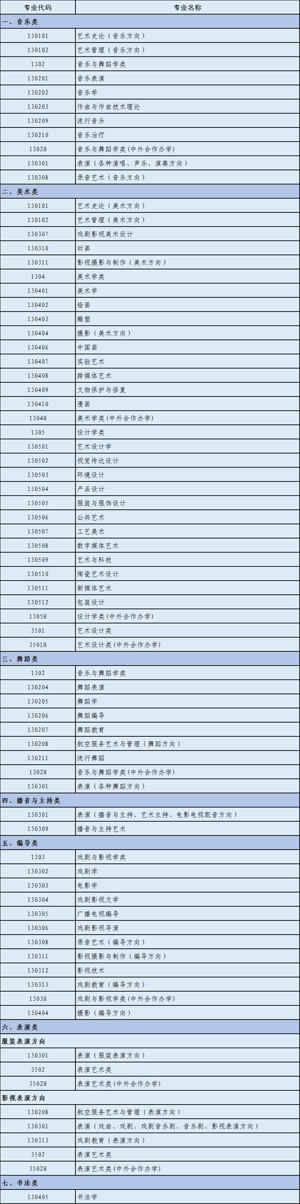 备注:报考独立设置本科艺术院校(含部分艺术类本科专业参照执行的少数高校)等艺术类本科提前批院校相关专业的考生,由招生院校指定其须取得某一类别专业省级统考本科合格证。