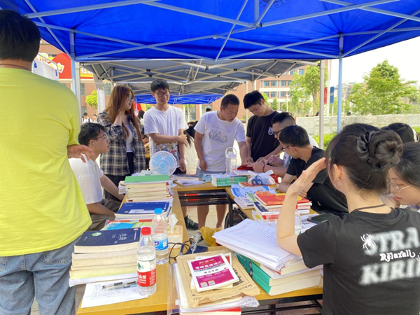 活动现场共设14个摊位,其中,竞赛神器、及第研习攻略、考研考公资料、面试求职经验等由学生党员主打的经验兜售摊颇受欢迎。校外乡镇公务员,校内“红色驿站”党建思政工作室辅导员也到现场为学生答疑解惑。此外,活动现场还设置了专营寿司的“快乐星球队”、售卖糯米麻糍的“美食妙妙屋”等8个创业零食小商铺,为本次社区文化节带来强烈的人气效应。