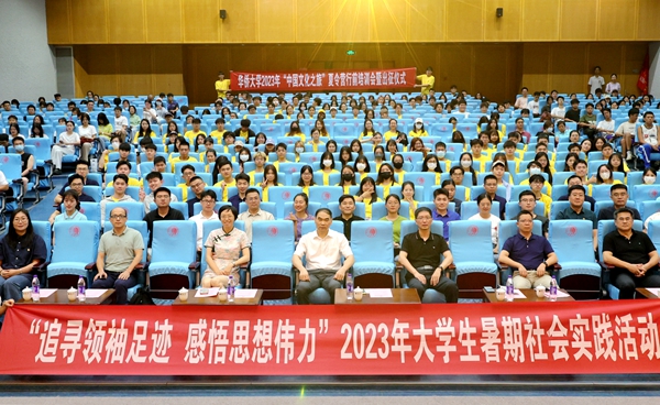 华侨大学2023年学生暑期社会实践暨“中国文化之旅”夏令营出征仪式7月7日下午在厦门校区举行。华侨大学副校长王秀勇出席出征仪式,为社会实践团队、“中国文化之旅”夏令营代授旗。学生处、教务处、校团委负责人,各团队实践导师及360余名学生参加出征仪式。