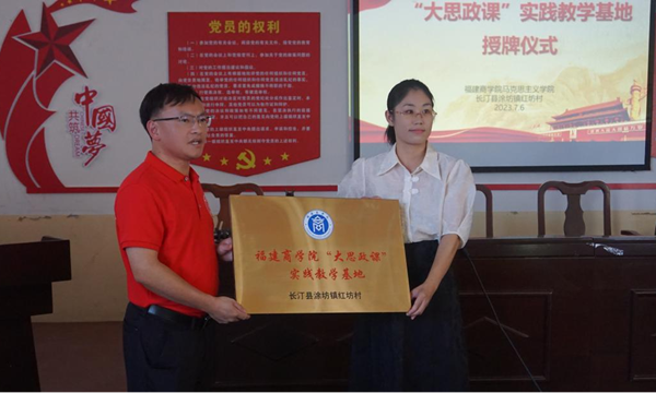 近日,福建商学院与长汀县涂坊镇红坊村共建“大思政课”实践教学基地揭牌仪式举行。
