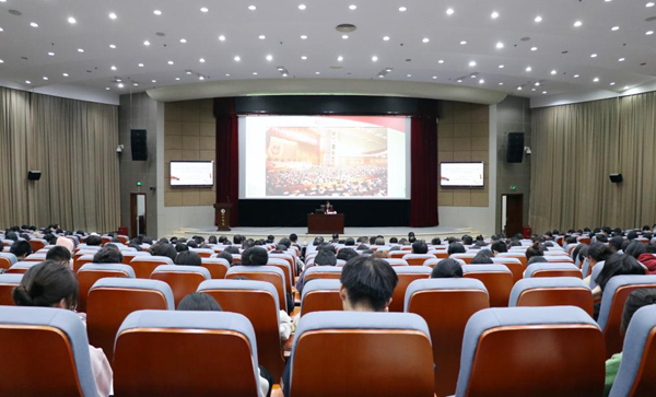 12月12日,福建省“百名法学家百场报告会”福州地区高校专场报告会在福建中医药大学举行。省委政法委副书记徐华应邀作题为《深入学习贯彻习近平法治思想,推动宪法全面实施》的专题报告。省委政法委委务会议成员、省法学会专职副会长林良灌,福建中医药大学校、院两级党委(党总支)理论学习中心组成员,省教育厅、省法学会有关处室负责人,学校中层以上干部及部分学生代表共600多人一起聆听了报告会。