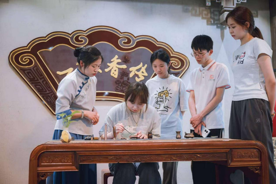 随后,实践队到达永春,在彬达制香厂和国家燃香类产品质量监督检验中心,沉浸式体验非遗制香技艺,了解燃香产品安全与检测标准体系,通过非遗文创,深化闽昌两地交流合作。
