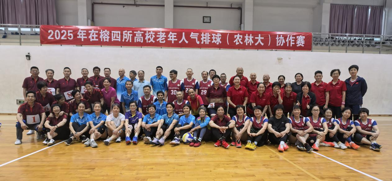 5 月 25 日下午,农林大学白鹭体育馆内气氛热烈,由该校老体协主办的 2025 年在榕四所高校老年人气排球协作赛在此开赛。来自福州大学、福建师范大学、福建医科大学、福建农林大学四所高校的男女队员齐聚一堂,以球会友、共展风采。