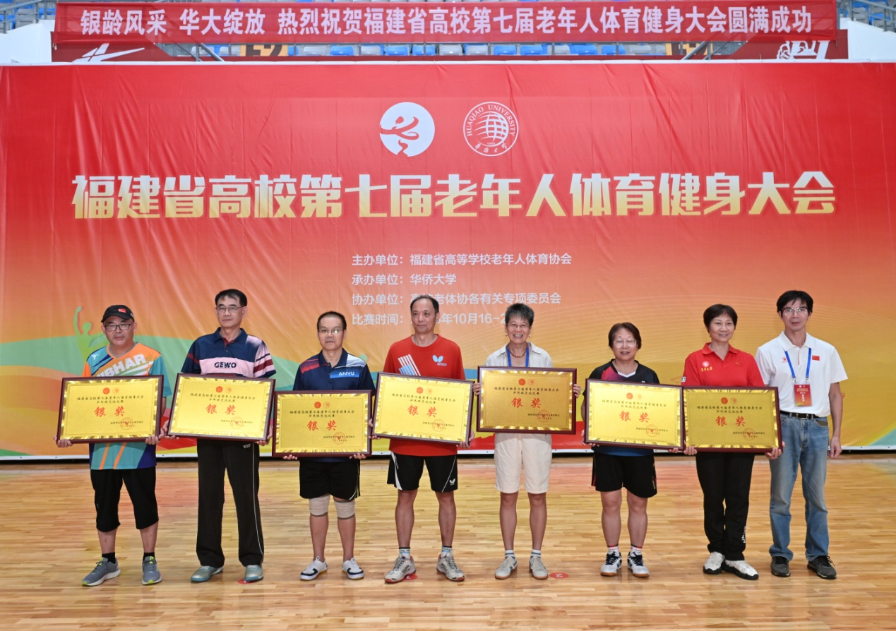 作为高校老体协乒乓球新增的男女双项目,本次比赛体现了较高的水准,队员配合默契,来回球多,观赏性强。每个精彩的回合,都迎来场上观众的阵阵喝彩。最终男双冠军为集美大学施纯志/林德富夺得,福建医科大学薛乘⻛/周岩亚军、福州大学韩祖⾏/朱祖平华侨⼤学蒲继雄/林爱雄分获第2至4名。女双冠军为华侨⼤学吴亦军/韩圣兰所获,福州大学林雪萍/江志莲、福建医科大学何双妙/黄妍绫、福建信息职业技术学院吕翠芳/魏正珠分列第2至4名。