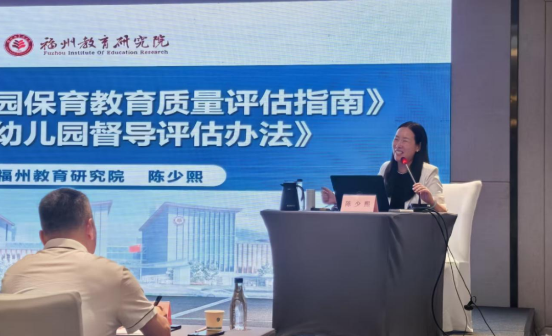 福州教育研究院培训处副主任兼学前教育科主任陈少熙作《精读<幼儿园保教质量评估指南>,用准<幼儿园督导评估办法>》专题讲座,结合学前教育发展特点,指导学员精准把握督导评价标准,推动幼儿园保教质量提升。