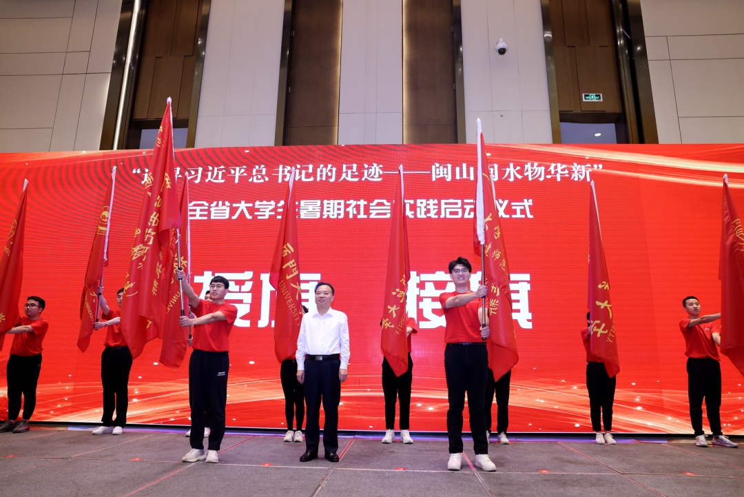 省委教育工委书记,省教育厅党组书记、厅长林和平出席仪式并致辞。他强调,各高校要把办好本次暑期社会实践活动作为一项重大政治任务。一要精心组织,充分调动资源力量,精心设计实践路线,通过实践活动教育引导青年学生真正把对习近平总书记的深厚爱戴之情,转化为忠诚拥护“两个确立”、坚决做到“两个维护”的政治自觉、思想自觉和行动自觉。二要齐心协力,厦门大学、福建师范大学作为牵头高校,要注重统筹谋划和协调推动;华侨大学、福州大学等其他六所高校作为成员单位,要积极主动配合、形成团队合力。三要强化支撑,围绕实践活动要求,强化资源统筹,配强指导教师,为师生学习好、采访好、拍摄好、讲演好活动成果提供全方位支持。