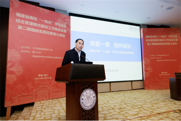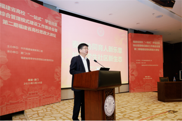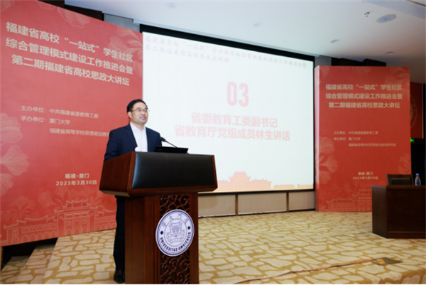 3月30日,全省高校“一站式”学生社区综合管理模式建设工作推进会暨第二期全省高校思政大讲坛在厦门大学召开,省委教育工委副书记、省教育厅党组成员林生出席并讲话。