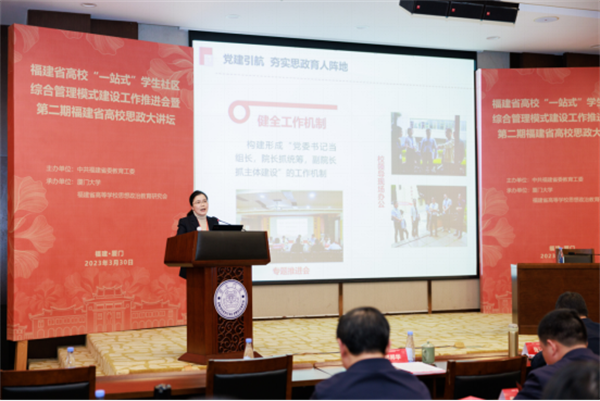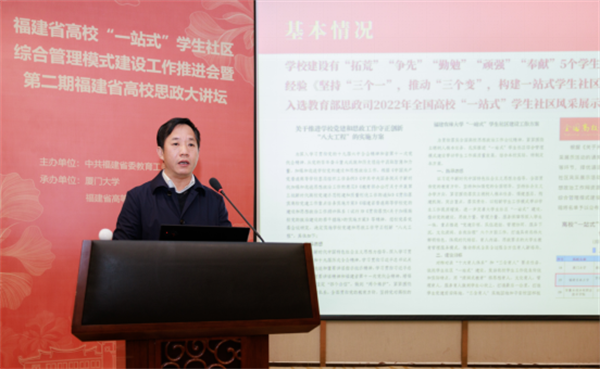 高校“一站式”学生社区综合管理模式建设工作是深入学习贯彻习近平总书记关于教育的重要论述,适应新形势新情况、加强高校党的建设和思想政治工作的重要体制创新。近年来,福建省认真贯彻落实党中央决策部署和教育部工作要求,坚持立德树人根本任务,抓好系统谋划、统筹推进,“一站式”学生社区建设工作体制机制更加健全、制度建设更加规范、工作举措更加精准、服务保障更加有力,“一站式”学生社区综合管理效能作用得到更好发挥,在提升高校党建和思政工作质量、深化“三全育人”综合改革、统筹做好疫情防控和维护校园稳定等方面发挥了重要作用,取得了明显成效。