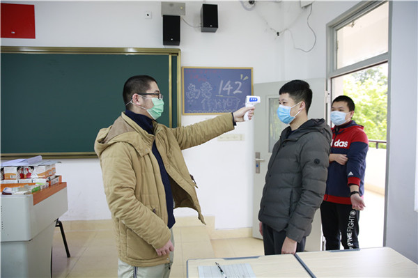根据安排,福州第一中学的寄宿生4月6日已经全部报到。全校共有寄宿生284名,学校将原有的6人间改为了4人间,并安排专人在宿舍门口进行体温测量。