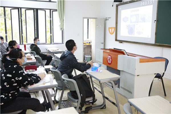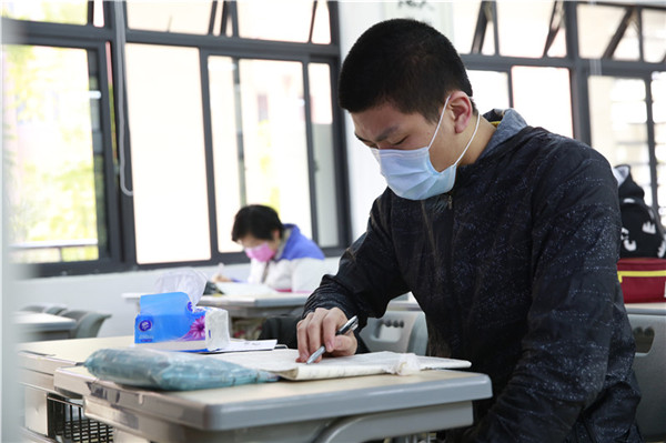 下午3时,同学们进入正式的课堂学习。范旭东介绍,小班化教学其实对高三的复习更为有效,有利于老师和学生进行充分的沟通。“线上教学和线下教学毕竟有差距,所以开学前两周我们先不着急往下教学,主要是巩固线上教学的知识,帮助学生线上和线下学习相结合,然后再开展新一阶段的复习。”