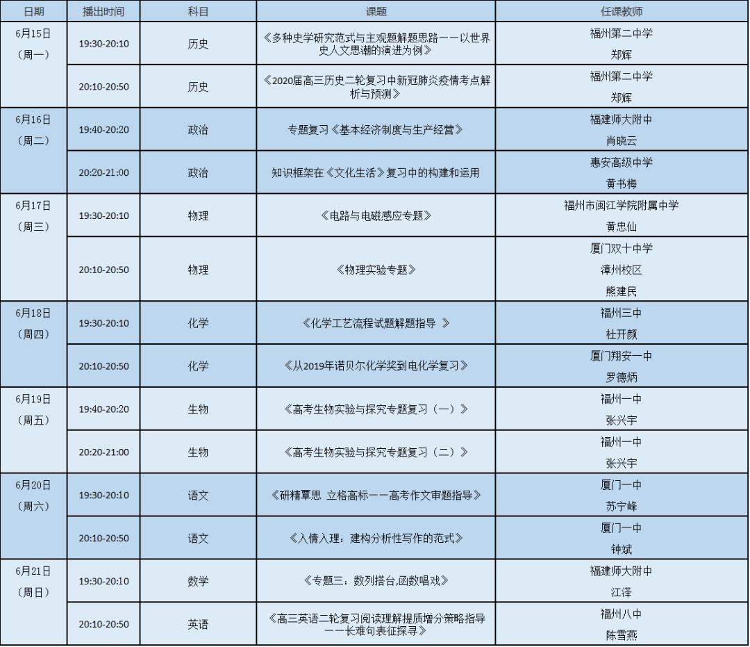 《空中课堂·备战高考》课程表