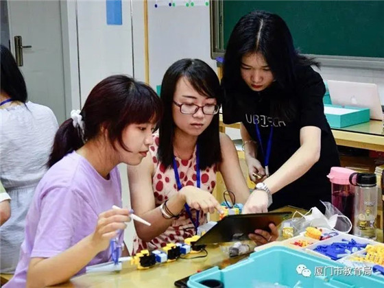 作为新兴学科,拥有人工智能技术的更新和应用层面项目实战教学能力的师资严重缺乏。今年7月,厦门市“人工智能进百校”项目小学、中学教师专题培训分别启动,近300位中小学教师在厦门第二实验小学、松柏中学高中部分别开展为期三天的人工智能教育课程专项培训。