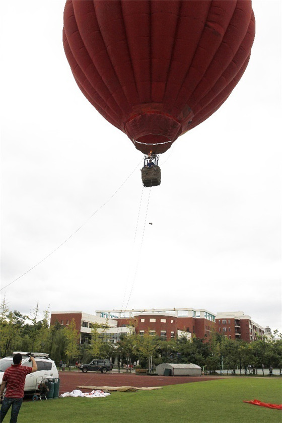 2014年9月,在伽利略诞辰450周年纪念日当天,林立灿在校园重现了著名的“伽利略比萨斜塔”物理实验。他向省航空学会借来热气球,在60多米的高处,将两个质量分别为3千克和5千克的铅球同时“静止释放”,做自由下落对比实验。