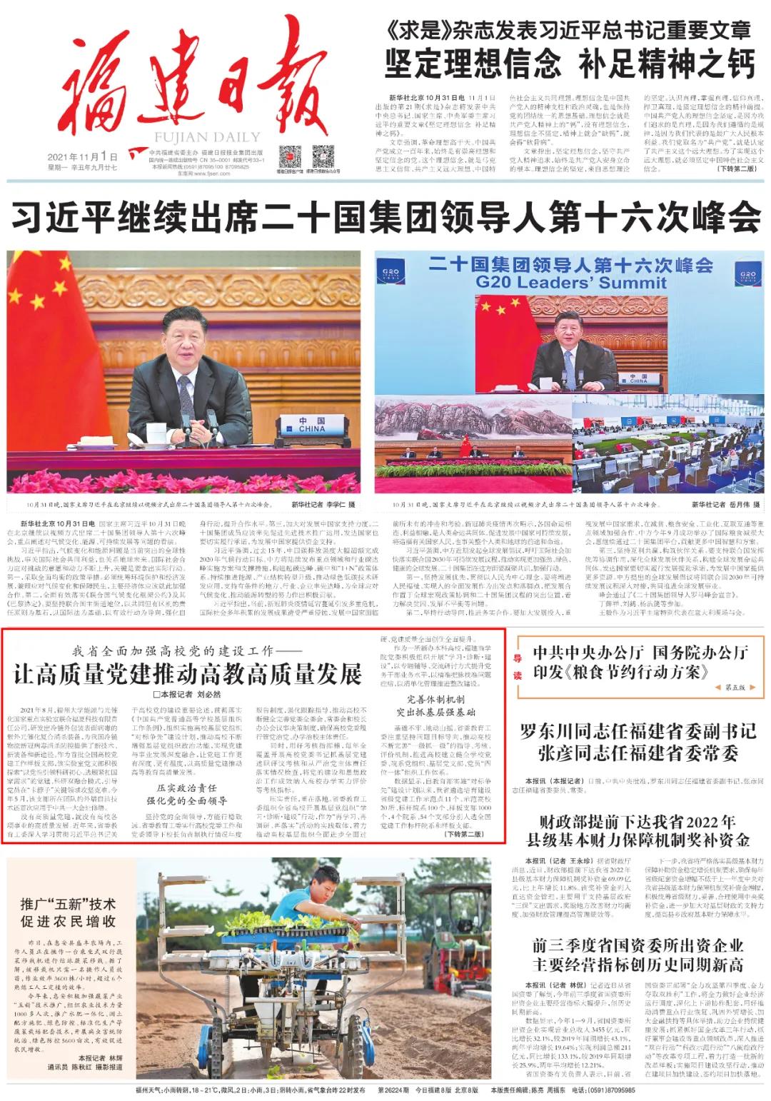 省委教育工委负责人表示,全省高校将持续深入学习贯彻习近平总书记关于高校党的建设重要论述,贯彻落实全国高校党建工作会议精神,不忘立德树人初心,牢记为党育人为国育才使命,为奋力谱写全面建设社会主义现代化国家福建篇章作出新的更大贡献。