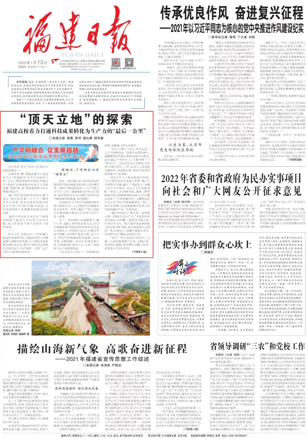 校企合作、校地合作,产学研融合推进科技成果转化,福建高校努力与国家重大战略同频共振,与区域经济高质量发展同步发力,着力打通科技成果转化为现实生产力的“最后一公里”,进行“顶天立地”的积极探索。