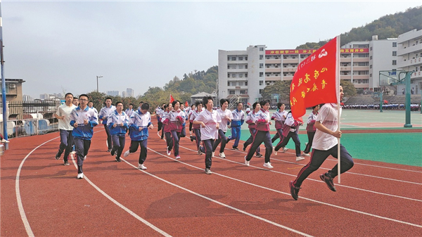 在三明市列东中学,学生在大课间跑操,锻炼身体