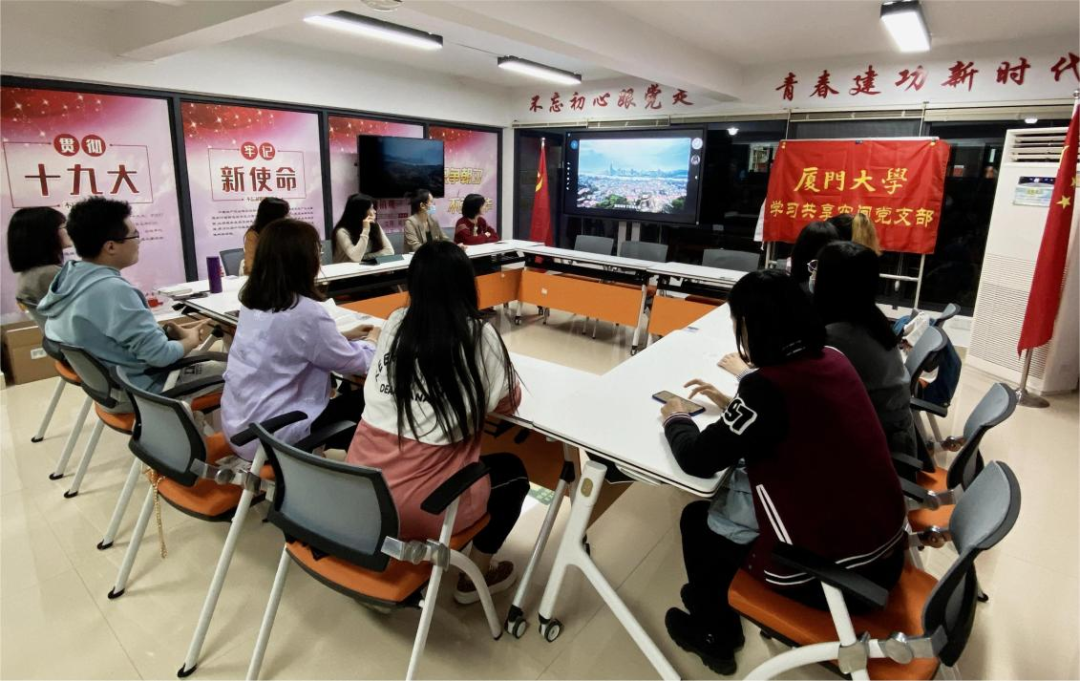 厦门大学学习共享空间党支部全体党员在“一站式”学生社区党团活动室学习现场