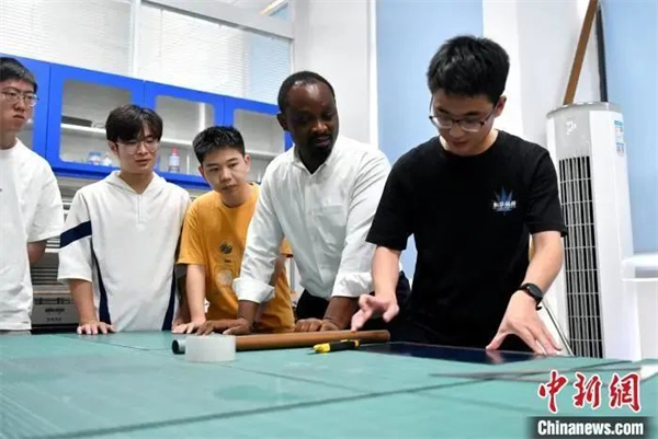 南吉姆瓦(右二)在福州指导学生制备复合材料结构试样