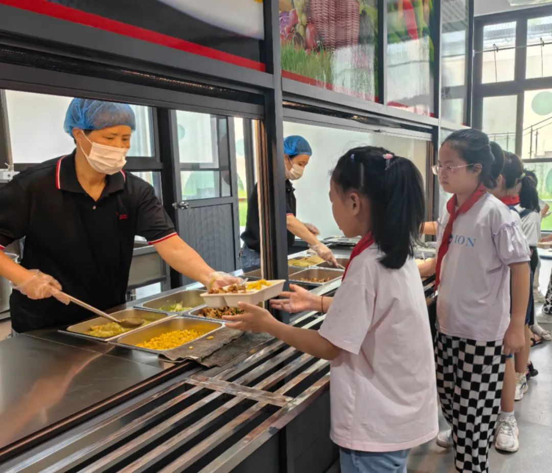 二是试点先行,灵活依校施策。坚持“试点先行”“一校一策”,在试点校选择上突出“代表性”,综合考虑城乡分布、学生结构、硬件场所等因素确定试点校。利用现有资源,在改造中突出“长效性”,装配保温餐台、自动消毒柜等必备设施设备,在满足基础需求上有序提升。2023年秋季,全区有25所学校、27个分餐点完成建设。