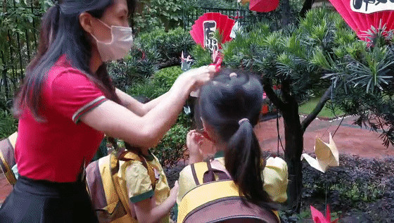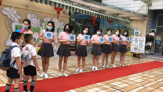 福州温泉幼儿园老师们欢迎小朋友们“回家”