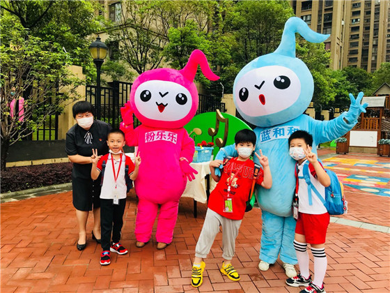 福州市晋安区直属机关幼儿园吉祥物“蓝和和”与“粉乐乐”迎接孩子们