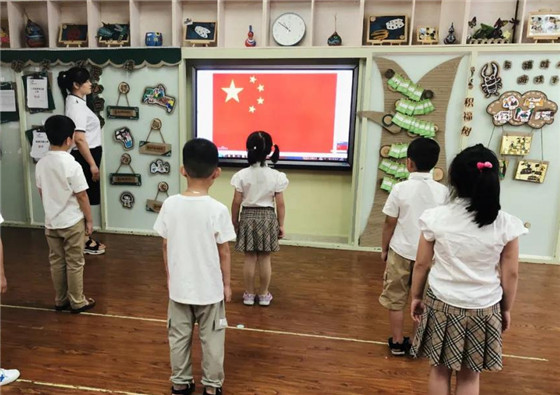 福州鼓山中心幼儿园在班级举行升旗仪式